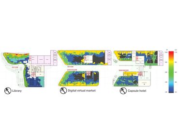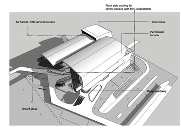 Creating a wind tunnel to maximise the natural ventilation factor. Locating the void at the wind direction flow. Outdoor area can be proposed in a well ventilated location to help the users reaching the thermal comfort level needed.