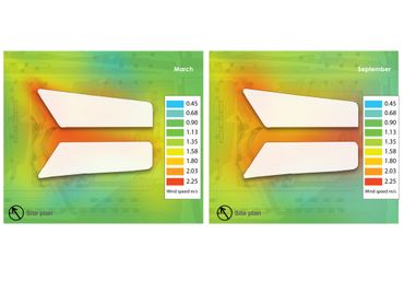 CFD simulation has been conducted by design builder software to show the building form respond to the wind factor. The result shows better conditions. The simulation shows average results in 2 different months.