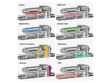 The proposed project introduce an innovative solution for retails. The method is to buy virtually by scanning barcodes from large screens. This method provide better full scale size of the products and minimise the spaces allocated for showrooms. After scanning and purchasing, the order will be collected from the warehouse and packed and prepared at one of the pickup points in the building. However, a drone delivery is introduced as well as a future potential of TOD development.