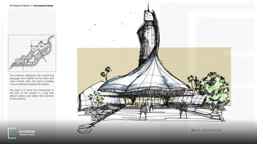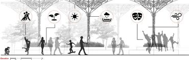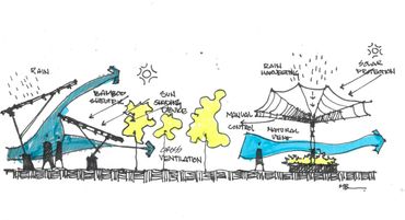 The aim was to identify the most suitable location for the proposed activities in the given location. At first, site analysis and synthesis is taking place to propose a location without including any structural elements to the site. A pavilion has been proposed to provide a shading devices with water harvesting strategy.
